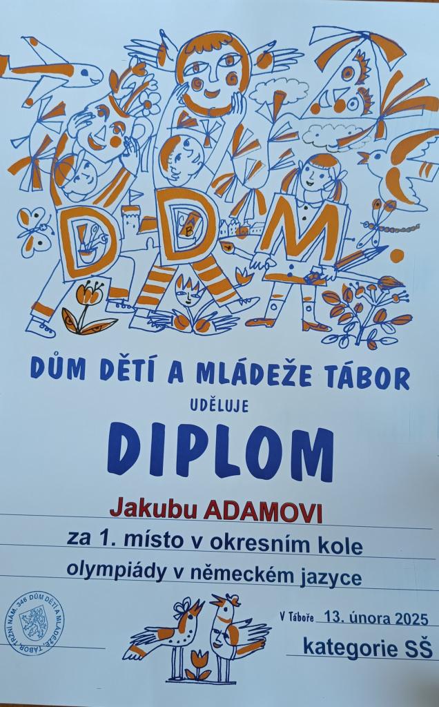 Kubovi držíme pěsti a přejeme hodně štěstí v krajském kole, které se uskuteční 2. 4. 2025 v Č. Budějovicích.