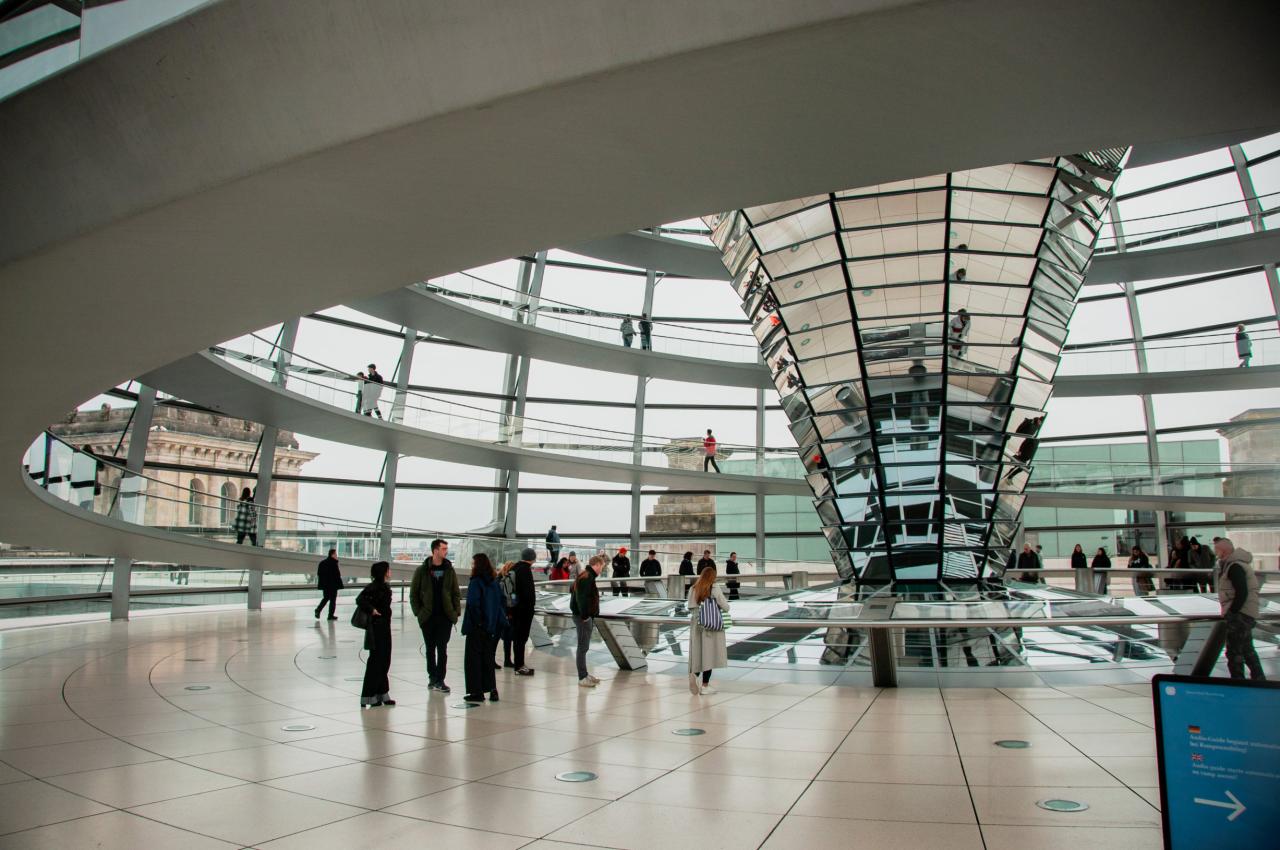 Druhý den započal u hraničního přechodu Checkpoint Charlie. Potom jsme se vydali směrem k Braniborské bráně a nedaleké budově Říšského sněmu. Tentokrát jinou, avšak neméně ponurou, etapu historie jsme si cestou připomněli prohlídkou výstavy a návštěvou Památníku holocaustu. Štěstí nám přálo a naskytla se nám možnost obdivovat Reichstag, nahlédnout do jeho interiérů a vystoupat až k vrcholu skleněné kopule, odkud jsme se zaujetím pozorovali celý Berlín z ptačí perspektivy.